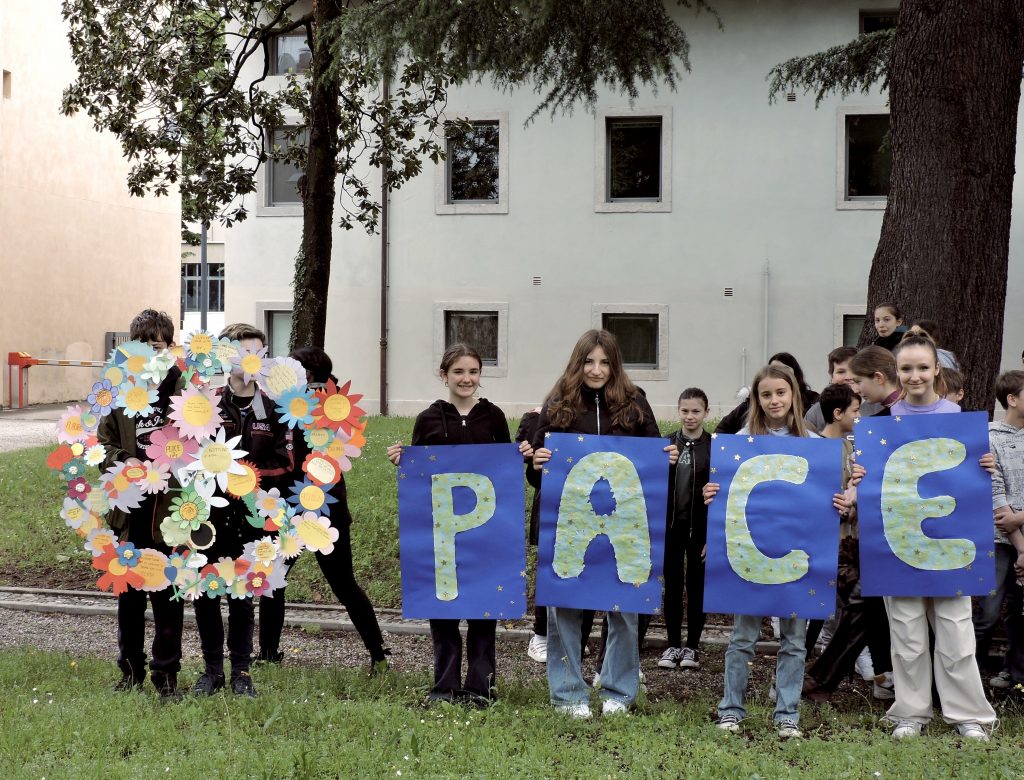 E’ quel che oggi manca all’Europa dove la tecnologia, l’intolleranza  e la violenza di armi sempre più sofisticate e distruttive sembra allontanare l’umanità dal senso dell’equilibrio, della speranza e del dialogo, ovvero della pace. Il giovane albero, sistemato in terra dal Presidente dell’Accademia Claudio Cressati, dal Direttore Pio Baissero e dal Presidente del Kulturni Dom Igor Komel, dopo la benedizione di Don Alberto Denadai, è stato accompagnato dalla lettura di alcuni temi scritti dagli alunni della Scuola Media “Locchi” di Gorizia, presenti alla cerimonia con i loro docenti e i cartelli colorati con la parola “Pace”.