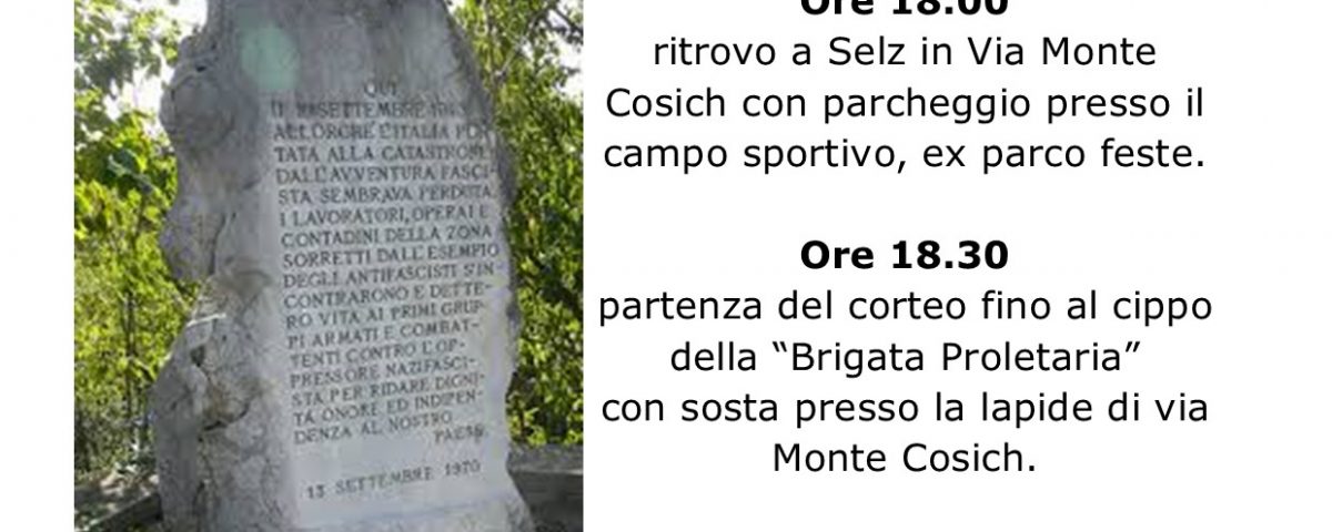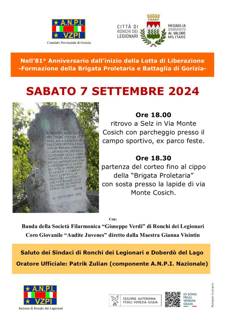 81° Anniversario dell’inizio della Lotta di Liberazione – Formazione della Brigata Proletaria e Battaglia di Gorizia