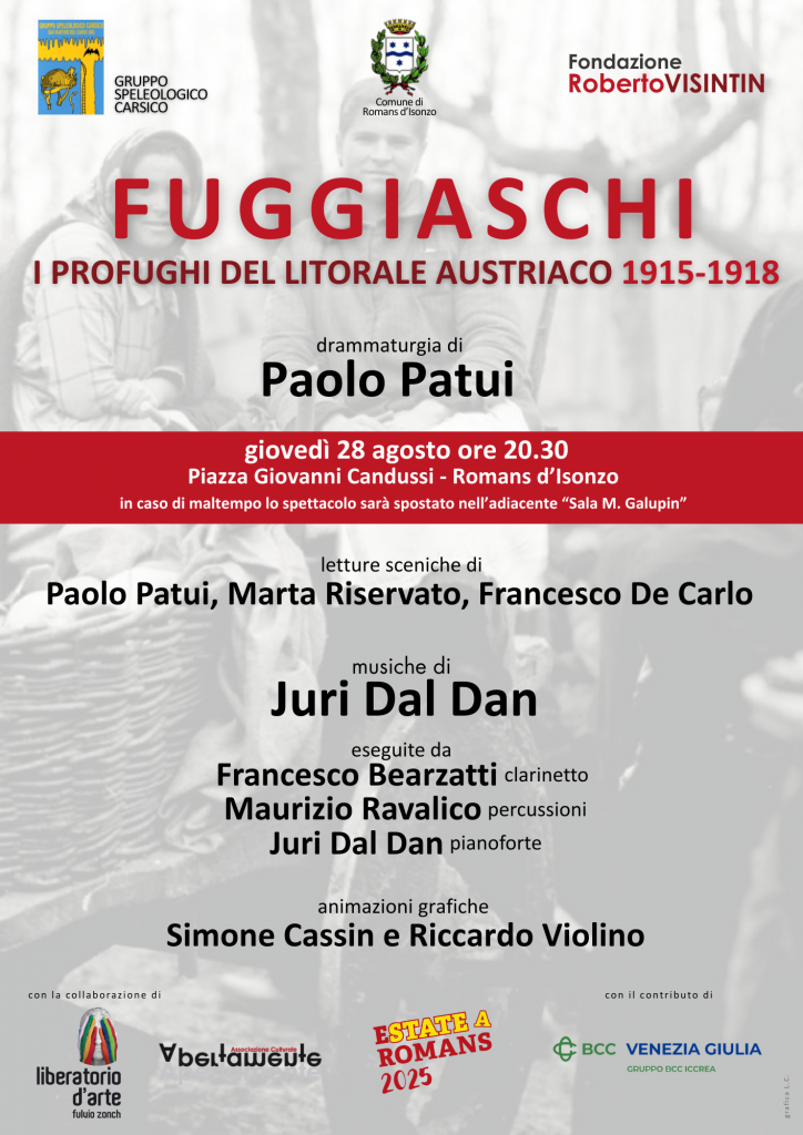 Lo spettacolo teatrale, scritto e curato da Paolo Patuj, scrittore e drammaturgo, è promosso dal Gruppo speleologico di San Martino del Carso e dalla Fondazione Roberto Visintin, con la collaborazione del Comune di Romans d’Isonzo e di altri preziosi contributi,  Associazione culturale Apertamente, Liberatorio d’arte  e della Bcc della Venezia Giulia.