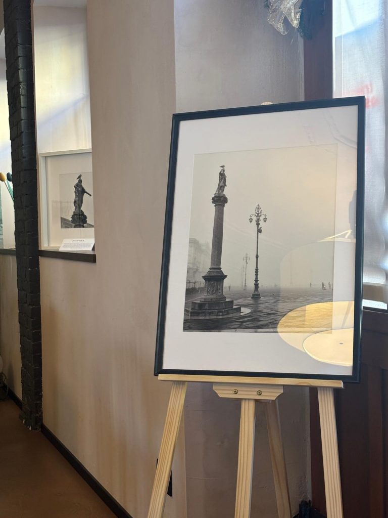 I lavori esposti, tutti in bianco e nero, ritraggono la Trieste delle rive e delle piazze, con i suoi palazzi storici immersi in una giornata in cui tutto sembrava sospeso tra cielo e mare, mentre i contorni sfumavano in una gamma di grigi indefiniti e impalpabili. Come non cogliere l’opportunità? L’obiettivo non era tanto realizzare una mostra, quanto catturare ogni attimo di quell’atmosfera distaccata e inusuale, a cui la città — complice la bora — non è abituata.